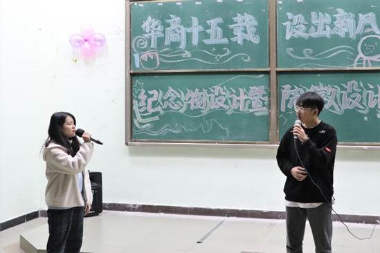 宋元跃老师上台发言,他表示这次活动结合了十五周年的设计理念,并在设计作品中将概念充分体现出来。他对在初赛中脱颖而出的小组表达了祝贺,对比赛背后默默付出的工作人员表示了感谢。华商走过了十五载春秋,孕育了一批又一批的华商学子。他希望通过文创物品的精心制作,进化我们对华商的感情,对华商十五周年的祝福。