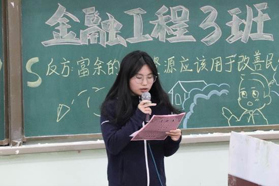 正方提出富余的社会资源用于探索未来更有利于推动社会的发展,更具有远瞻性和可行性,而人认知事物的有限性和复杂性决定事物的不确定性,我们应该做的是把不确定性的事物变成确定性的事物。反方则反驳探索未来则具有不确定性和不稳定性,而改善民生更具有直接性,能够使更广大人民群众直接受益,人从最基础的需求到最高价值的实现,都是需要依仗稳定的民生和可以持续上升的社会形势。双方辩手们据理力争,见缝插针,有条不紊,全场氛围高涨,掌声连连,比赛激烈,火药味十足。