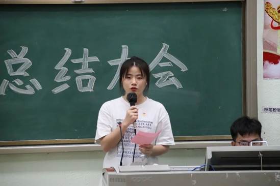 黎浩俊同学为本次活动总结发言,他谈到两方面,一是目光回望过去,心中铭记党史,作为祖国新青年一代,应该有理想、有担当,争做时代青年。二是在网络诈骗愈发横行的时代,同学们要增强防诈骗意识,维护好切身利益。最后他对所有工作人员的付出表示了衷心的感谢。