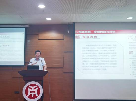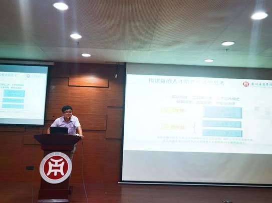 王汉章常务副院长以“商学导向强内涵,科技引领促发展”为主题做了专业建设与课程建设工作要点汇报。指出了当前教学工作中的形式与任务,介绍了专业建设的短板和拓展方法以及课程建设的三大块:专业课、思政课、实验课。分析针对招生和就业问题,构建人才培养的两段式跨专业选修培养模式,并提出了建设目标:打造具有华商特色的金融学课程体系,希望老师们凝心聚力为建设好华商的金融学院而努力。