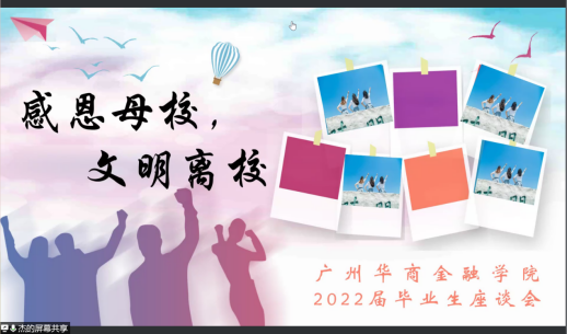 至此,广州华商学院金融学院2022届毕业生座谈会圆满结束!最后祝愿2022届金融学院全体毕业生们毕业快乐!祝愿毕业生们在未来新的人生道路上,一帆风顺,前程似锦,都能取得佳绩,成为更好的自己!