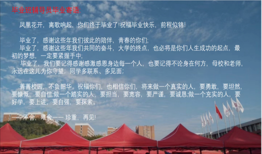 邱会锋老师进行发言。他希望毕业生们能牢牢记住学院的叮嘱,做一个懂得感恩的人,回报母校、回报社会,回报祖国。最后,他衷心祝愿全体2022届毕业生工作顺利、前程似锦。
