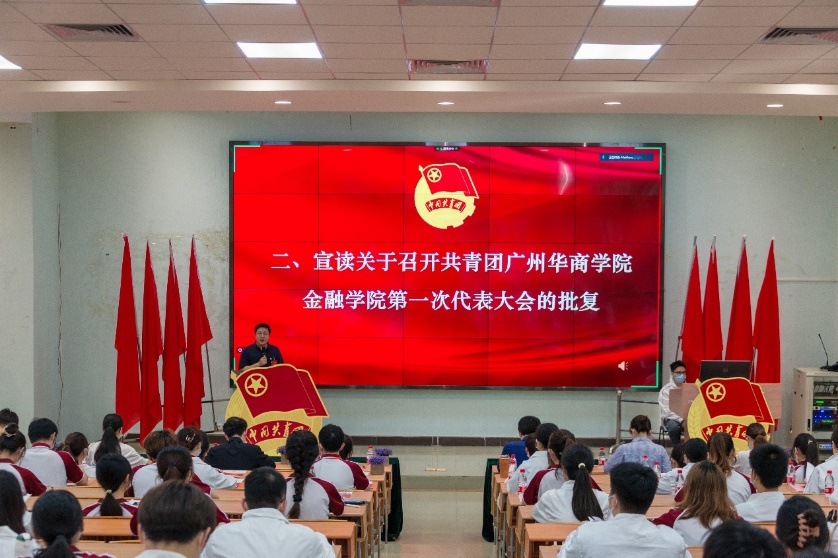 大会在庄严肃穆的国歌中拉开了序幕。会上,校团委陈刚书记宣读了《关于同意召开共青团广州华商学院金融学院第一次代表大会的批复》。