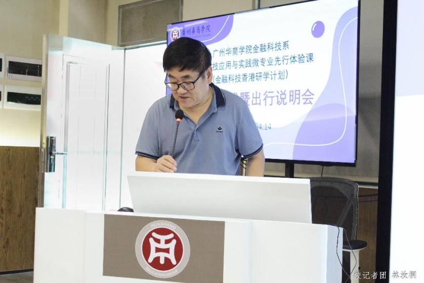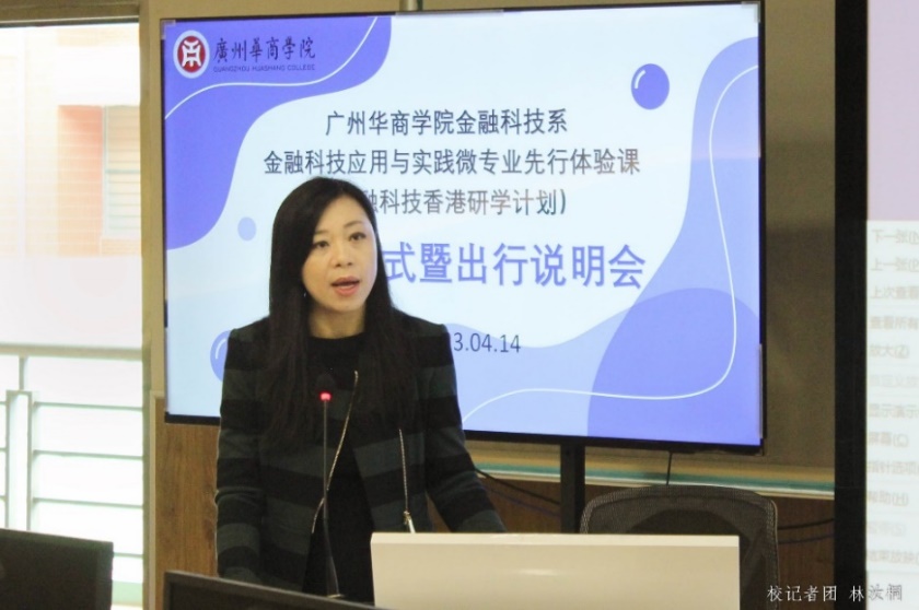 2023年4月14日上午,广州华商学院首个开设的金融科技应用与实践微专业先行体验课(金融科技香港研学计划)正式启动。华商教育集团总裁廖伊曼女士、广州华商学院刘少波副校长、我院刘湘云院长、王汉章常务副院长、金融科技系左光宇副主任、谢一颗副主任以及赴港研学师生出席了活动,王汉章常务副院长主持本次活动。