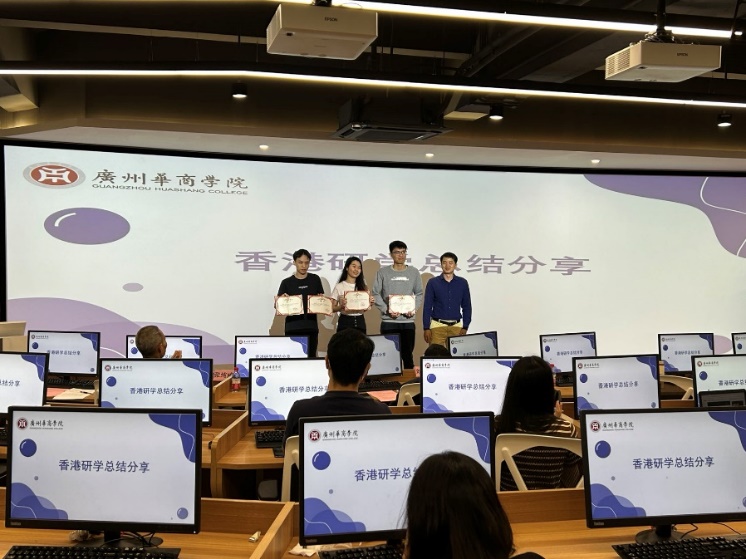 张纯威副院长为香港研学优秀教师聂婷颁奖,邱会锋主任为优秀学生潘健鋆、卢潇钧、廖卓颖、姚绮晴颁奖。