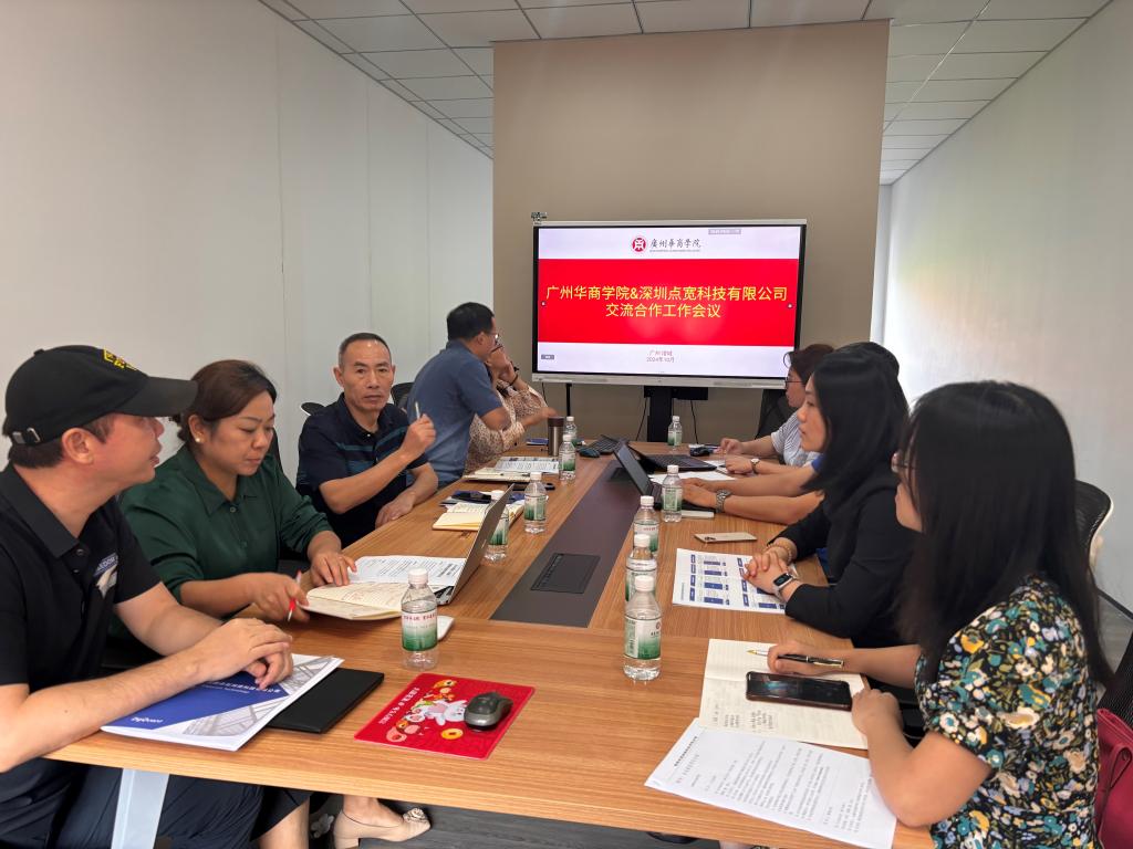 2024年10月15日,深圳点宽科技有限公司董事长黄嵩、总经理徐辣、大客户经理刘凯莉受邀来我院共商建立工作坊及开展创新班合作事宜。广州华商学院数字金融学副院长张纯威、数字金融学院李明杰副院长、经济与金融系主任卢敏、数字经济与金融科技产业学院办公室主任赵娟、金融科技系副主任赵彬琰、数字金融学院钟坚毅老师出席本次合作会议。 双方在前期的沟通洽谈中达成诸多共识,此次合作会议主要以产教融合工作为主题,双方商议共建工作坊,共同开设创新班,在课程建设、师资培训、人才培养、实习时间、学生大赛及企业研学等多方面开展活动,旨在结合双方优势更好地推动我院专业建设和数智化转型,加大双方产教融合工作的深入合作。 数字金融学院张纯威副院长介绍了我院产教融合工作现状,并提出未来的发展思路。深圳点宽科技有限公司总经理徐辣从师资培训、人才培养、课程建设、实习实践等方面介绍了公司的发展优势及优秀合作案例。深圳点宽网络科技公司是我院合作企业,此次合作将推动双方产教融合工作的进一步深入。 会谈中,双方就合作共建工作坊及创新班具体方案进行了深入的探讨,计划本学期开设第一期工作坊和创新班,组织学生前往金融科技企业参访调研。深圳点宽网络科技有限公司董事长黄嵩非常认可我院在产教融合及人才培养方面的理念,期待参与学院高质量发展和国际化人才培养工作中。期待双方在专业建设、课程开发、实习实践、学生大赛等方面开展深度合作。