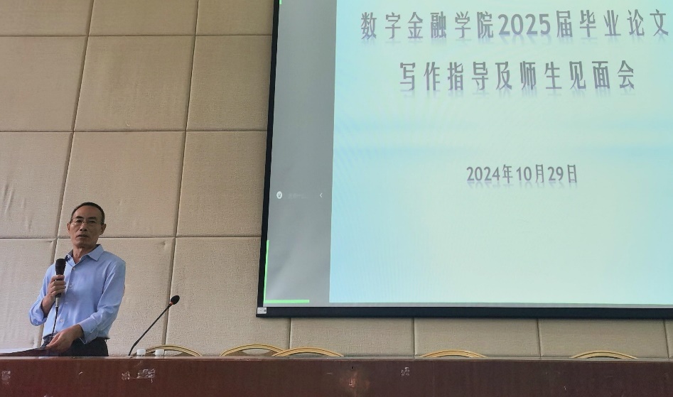 数字金融学院毕业论文指导及师生见面会顺利召开! 为加强毕业论文工作管理,规范毕业论文指导和写作,强化毕业论文过程管理,以评促建,提高本届毕业论文质量,数字金融学院于2024年10月29日14:00-18:00在华商学院广州校区励志楼C208举行毕业论文写作指导专题讲座和毕业论文师生见面会。 参加人员有数字金融2025届毕业论文工作领导班子和全体毕业论文师生,会议由数字金融学院张纯威副院长主持。 本场毕业论文写作指导专题讲座由王汉章教授为我院全体毕业论文师生展开,主讲人王汉章教授,硕士生导师,创业导师、南方财经投教基地专家顾问,教育部学术论文评审中心博硕论文评审专家,广东省高教厅大学章程审核委员会专家,广东省新商科实验教学委员会理事,中国财政史教学委员会委员。曾任中国农业银行区县行长培训讲师、处长助理,中国农村金融学会理事,天津市民盟经济委员会委员,天津市科技协会会员、天津商业大学金融系负责人、财政系主任。2019年来广州华商学院工作后曾任广州华商学院金融学院经济与金融系主任和数字金融学院常务副院长。多年的教学生涯中曾多次获得教学质量奖、优秀教师奖、指导学生获省级创新创业大赛金奖、创业创新先进个人;曾兼任澳美基业、天津红磡房地产公司总会计师。多年来一直从事金融与财政理论的教学与研究,先后在《中央财经大学学报》《现代财经》《国研网》等重要期刊与网络发表学术论文40余篇。主持参与教育部社科基金项目、省部级社科基金项目、横向课题等16项。主编出版《网上金融学》《现代商业银行营销与管理》《中外货币辨假》等著作10余部。《保险学》、《税收学》课件获教育部课件大赛”优秀奖。 王汉章教授的毕业论文专题讲座内容详实,循循善诱,从写好一篇毕业论文的选题原则、开题、写作规范与标准、论文管理过程、参考文献要求、论文写作指导过程、题目重要性、检索文献方式方法、答辩的规范和方法等主要方面进行深入细致阐述。此次专题讲座对我院2025届毕业论文工作的开展、指导老师的指导、学生的论文写作开启了一次重要的方向指引,为毕业论文工作的顺利进行奠定了基础,不少数字金融学院师生表示获益匪浅。 讲座结束后,张纯威副院长对本届毕业论文指导工作进行重点强调和整体布置,全体师生必须牢记,第一,论文题目双向选题,意义是什么、收集数据途径、怎么研究和构建模型、题目避免重复;第二,论文学生和老师严格按工作计划进度安排完成;第三,严格按学校格式撰写规范执行。毕业论文事关评估,必须高度重视。学院要求从学生到教师应高度重视本届毕业论文的指导和写作工作,确保本届本科毕业论文工作按照学校要求高质量地有序完成。 随后数字金融学院各指导老师与学生进行2025届毕业论文师生见面会并商讨论文选题。至此,本届毕业论文专题指导培训讲座和师生见面会圆满结束! 图/文:数字金融学院 2024年10月30日