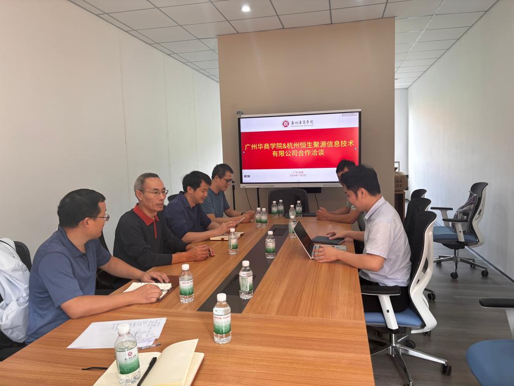 2024年11月5日,杭州恒生聚源信息有限公司业务总监刘孔凯受邀来我院共商建立产业学院事宜。广州华商学院数字金融学张纯威副院长、邱会锋副院长、李明杰副院长、院长助理荣佳、数字经济与金融科技产业学院办公室主任赵娟、金融科技系副主任赵彬琰、经济与金融系副主任魏攀老师、数字金融学院钟坚毅老师出席本次合作会议。 杭州恒生聚源信息技术有限公司是一家位于浙江省杭州经济技术开发区的高科技企业。该公司是恒生电子的子公司,专注于金融数据资讯服务、金融资讯终端、金融数据库、企业情报服务、金融终端、金融信息服务和计算机软硬件等领域的技术开发和技术服务。此次合作会谈主要以产教融合工作为主题,双方商议共建产业学院,在课程建设、师资培训、实习实践、就业及人才培养等方面开展合作,旨在结合双方优势更好地推动专业建设和产教融合工作的进一步深入合作。 数字金融学院张纯威副院长介绍了我院产教融合工作现状,并提出未来的发展思路。杭州恒生聚源信息有限公司业务总监刘孔凯介绍了公司的主要业务,期待与我院在金融大数据、AI人工智能金融等方面开展广泛合作。刘孔凯经理分别从师资培训、人才培养、实习实践、就业及人才培育等方面介绍了公司的发展优势及已有的成功合作案例,期待与我院达成合作共识,积极配合和推进我院产教融合工作。 杭州恒生聚源信息有限公司业务总监刘孔凯先生非常认可我院在产教融合及人才培养方面的理念,期待参与学院高质量发展和国际化人才培养工作中。期待双方更多领域开展深度合作,在金融大数据、人工智能金融领域实现更多融合发展。
