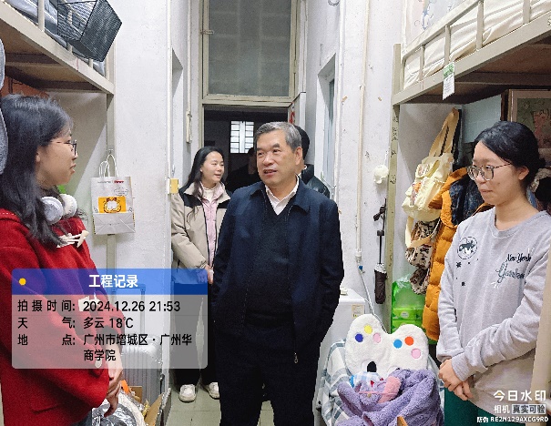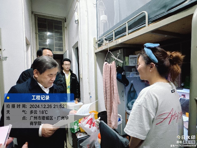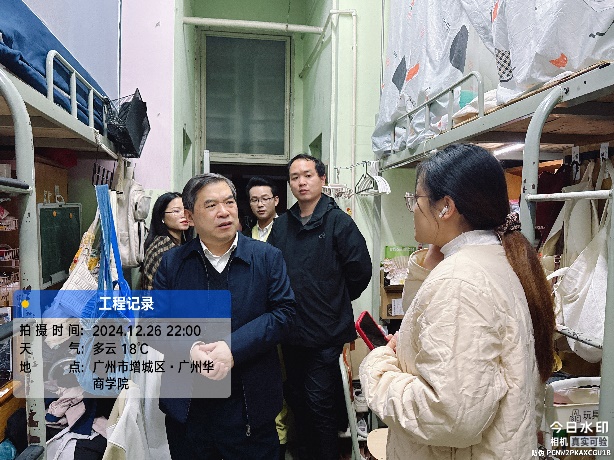 为推进“一站式”学生社区建设,落实学校领导进社区的工作要求,进一步做好学生教育管理与服务,根据《广州华商学院学生文明养成教育计划》相关规定,2024年12月26日晚,广州华商学院焦方太副校长亲自带队,深入西1、西2、西3学生宿舍进行走访。党委宣传部刘苗部长、实验与网络中心曾志区主任、健康医学院学工主任杨李军等中层领导干部,以及学生社区临时党支部书记、相关辅导员、学生党员代表等陪同视察。 在走访过程中,学校领导、老师与同学们亲切交流,详细了解大家的学习、生活情况,认真听取了同学们的意见和建议,亲切地询问学生生活需求、耐心解答同学们在学习生活中遇到的问题、并鼓励同学们要及时调整作息、合理规划时间,注意用电安全和卫生环境,合力营造安全、整洁、舒适的宿舍氛围,并叮嘱大家有困难要及时寻求学校、学院的帮助,共创安全、和谐、美好的校园生活。 殷殷嘱托从不厌,最是关爱暖人心。此次学校领导深入宿舍的走访活动,是我校进一步落实完善“一站式”学生社区建设的具体举措之一,不仅拉近了校领导与学生之间的距离,也让同学们感受到了学校对他们的关心与关怀。学校和学院将继续关注同学们的需求,为大家提供更好的学习和生活环境,助力同学们实现自己的梦想。也希望同学们在学校的关怀下,努力奋斗,成就美好未来!