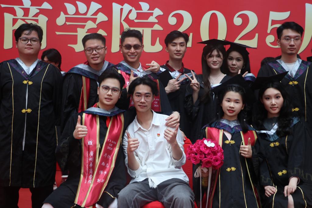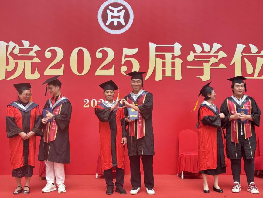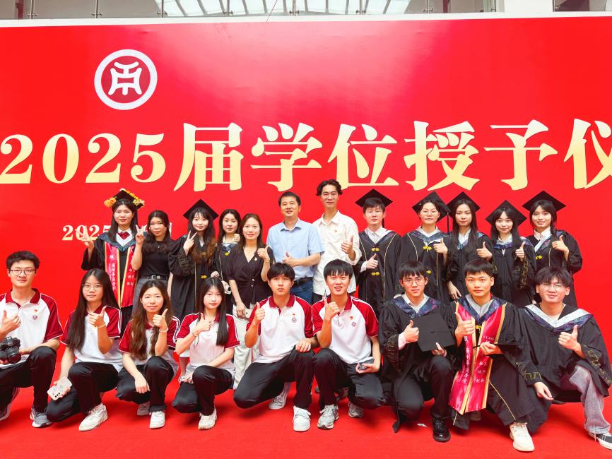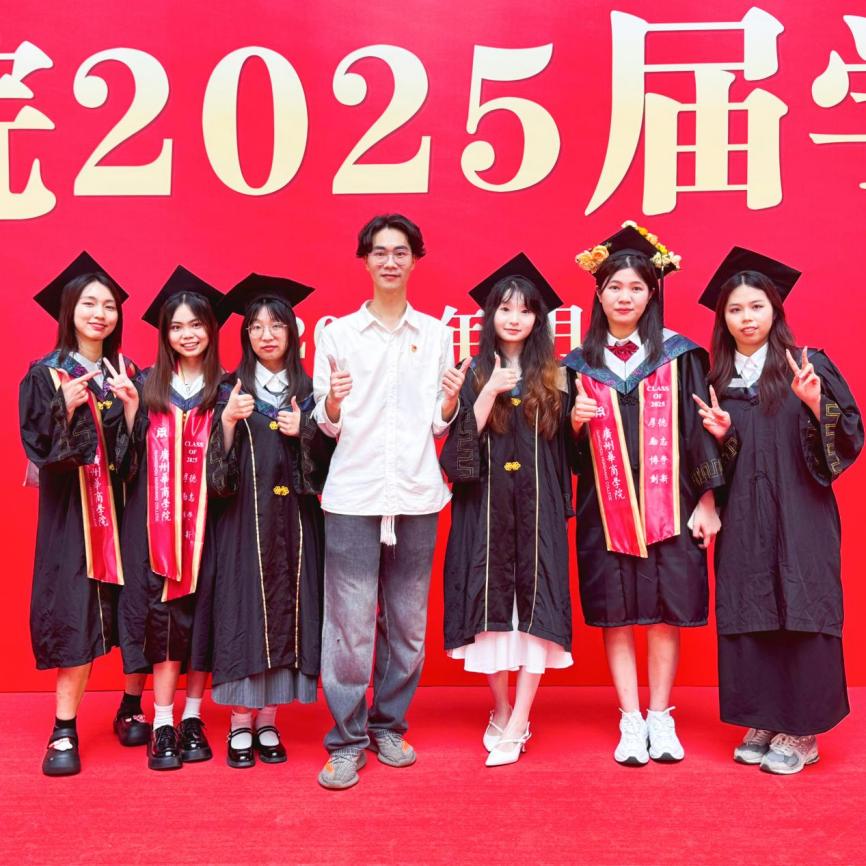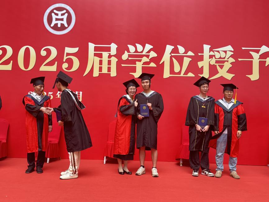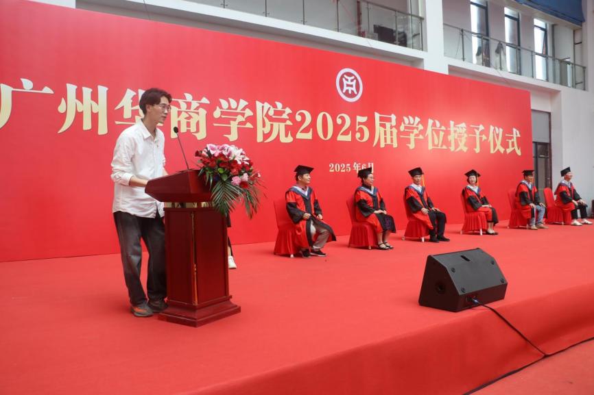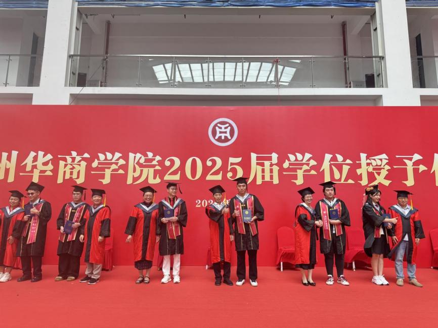 盛夏蝉鸣,硕果盈枝 在这充满希望与收获的美好时节 我们欢聚一堂 愿未来的旅程星辰闪烁,繁花灿烂 你我都奔走在各自的热爱里 数字金融学院2025届毕业生学位授予仪式 2025年6月21日中午,广州华商学院2025届数字金融学院毕业生学位授予仪式在创科楼一楼举行,190名毕业生圆满完成本科学业,开启人生新的篇章。 广州华商学院数字金融学院院长张纯威教授,广州华商学院数字金融学院副院长李明杰副教授,广州华商学院数字金融学院副院长邱会锋,广州华商学院数字金融学院院长助理钟坚毅副教授,广州华商学院数字金融学院赵芳教授,广州华商学院数字金融学院赵王学武教授,广州华商学院数字金融学院石巧荣教授,广州华商学院数字金融学院赵娟副教授,以及数字金融学院师生代表出席学位授予仪式。本次大会由数字金融学院学生工作办公室副主任张文杰老师主持。 中午12:30,授予仪式正式开始,主礼教授及嘉宾在热烈的掌声中步入会场。张纯威院长对毕业生表示热烈的祝贺和诚挚的祝福。典礼在庄严的国歌声中拉开帷幕,全场肃然站立,齐唱国歌。 广州华商学院数字金融学院副院长邱会锋宣读《广州华商学院关于2025年6月普通高等教育本科毕业生学士学位授予的决定》。随后,毕业生们依次上台,由主礼教授为他们正冠拨穗,颁发学士学位证书,毕业生对主礼教授表示感谢,鞠躬,握手,拥抱,合影。 用镜头记录下我们最美的瞬间,喜欢每一个镜头里的我们。 所有毕业生都已完成神圣的学位授予仪式,这不仅是一份证书,更是一份沉甸甸的责任与期许。希望同学们带着这份荣耀,勇敢奔赴未来! 广州华商学院数字金融学院2025届毕业生学士学位授予仪式礼成!祝愿毕业生们前程似锦,未来可期。请保持热爱,奔赴下一场山海。