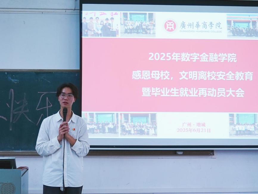以感恩致青春,以规范筑安全 2025年6月21日下午,广州华商学院数字金融学院“感恩母校,文明离校安全教育暨毕业生就业再动员大会”在广州校区隆重召开。学院领导、毕业班辅导员及全体2025届毕业生齐聚一堂,在温馨庄重的氛围中共话成长记忆,筑牢安全防线,吹响就业冲锋号。 大会以“感恩”为主线,通过回顾大学四年的点滴时光,唤醒毕业生对母校的深厚情谊。学院领导在讲话中特别提到:“从金融科技实验室的代码敲击声,到大湾区创新大赛的荣耀时刻,你们用青春书写了华商数字金融人的奋斗篇章。”现场大屏幕滚动播放的四年校园生活集锦,让不少毕业生红了眼眶,掌声与啜泣声交织成温暖的毕业序曲。 安全教育筑底线,文明离校显担当 针对毕业生离校关键期,大会重点开展了安全教育与文明离校规范教育。辅导员严肃提醒毕业生妥善保存毕业证、学位证,“这些证书是你们大学奋斗的见证,一旦丢失无法补办”。同时通过案例讲解,强调宿舍安全、财产安全及出行安全注意事项,引导毕业生以文明有序的方式告别校园,用实际行动诠释“今日我以母校为荣,明日母校以我为傲”的责任担当。 就业动员再发力,多元路径指方向 面对毕业季就业关键期,大会启动 “就业再动员” 专项行动。学院领导为优秀毕业生颁发荣誉证书,并邀请沈倩楠同学代表分享经验。“研途没有捷径,唯有坚持与热爱”,2025年,数字金融学子考研升学再创佳绩! 现场同步开展了征兵宣传与资助诚信教育双轨动员。通过 “华商国防服务号” 推送参军报国政策,解读 “毕业季遇上入伍季” 的机遇与荣光;针对贷款毕业生,详细讲解《毕业确定表》签署流程,强调 “诚信还贷是步入社会的第一堂信用课”。学院还特别聘请了9 名毕业生担任班级 “校友联络员”,搭建起 “毕业不脱节” 的母校情感纽带。 永远跟党走,奋进新征程 同时,数字金融学院学生党支部召开毕业生党员交流座谈会和组织关系转接动员会,通过专题动员和实操指导,帮助毕业生党员全面了解党组织关系转接的政策要求、流程规范及注意事项,增强党员身份意识和组织归属感,确保毕业生党员离校前完成组织关系转接工作,维护党组织的严肃性和规范性。 纪念礼物寄深情,扬帆起航正当时 大会尾声,每位毕业生都收到了学院准备的毕业纪念礼物,师生们用笑容定格下这一难忘瞬间。正如学院领导在结语中所说:“愿你们带着数字金融人的专业底气与母校的温暖嘱托,在数字货币浪潮中勇立潮头,在乡村振兴战场上贡献智慧,让青春在祖国最需要的地方绽放!” 据悉,学院后续将持续开展 “就业帮扶一对一”“校友大讲堂” 等活动,为毕业生走好职场第一步保驾护航。这个夏天,数字金融学院 2025 届毕业生将带着 “厚德、励志、博学、创新” 的校训精神,以感恩之心启程,用奋进之姿书写属于新时代金融人的华彩篇章!