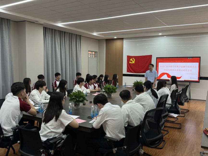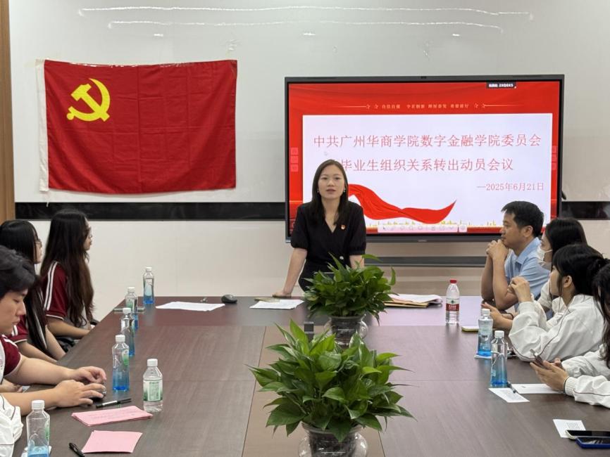 为切实做好毕业生党员教育管理与组织关系转接工作,强化党员政治意识与组织观念,2025年6月21日,中共广州华商学院数字金融学院委员会隆重召开2025届毕业生党员组织关系转出动员会议。学院党政领导班子成员、毕业生党员及支部委员参会,会议由数字金融学院学生党支部书记张文杰老师主持。 一、殷切嘱托:牢记党员使命 数字金融学院党委副书记邱会锋副院长首先代表学院党委向毕业生党员致以深切寄语,邱书记指出,毕业生党员必须站在对党忠诚的政治高度,将转接工作作为离校前的首要政治任务:一要深刻认识其严肃性;二要强化组织观念;三要以转接程序为政治体检契机,重温入党初心。 二、精准指导:明晰转接流程 数字金融学院党建工作组织员范明云老师就组织关系转接实操进行系统培训:明确步骤时限,压实责任,要求党员主动对接接收方确保零差错转接,同步开通专项咨询通道提供持续指导。 三、支部动员:传承红色基因 学生党支部书记张文杰老师带领全体党员重温入党誓词,并发出倡议: “站好离校前‘最后一班岗’!” 四、温情仪式:致敬青春信仰 会议最后特别设置荣光时刻环节: 🎖 颁发政治生日贺卡:定制贺卡,重温入党誓词,共忆入党初心。 🎂 共享蛋糕:镌刻姓名的蛋糕象征对校园的美好回忆。 📸 定格红色记忆:毕业生党员合影。 结语 组织关系转接是毕业生党员走向社会的“第一堂党课”。数字金融学院学生党支部将持续跟踪转接进展,做好跨地域党组织衔接服务,让每一名党员都能在新时代征程中闪耀信仰之光,书写青春奋斗华章!