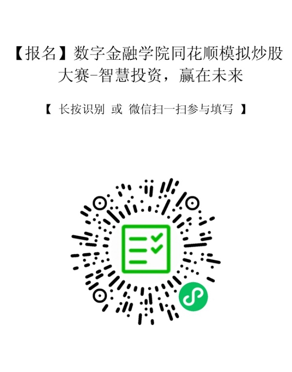 📌 竞赛简介 广州华商学院数字金融学院2025年“一院一赛”创新创业系列活动,由同花顺公司主办、面向数字金融学院金融工程、金融科技、经济与金融专业2023-2025级同学的模拟炒股大赛来啦!通过同花顺虚拟交易平台,真实体验股市操作,学习投资策略,提升金融实战能力!🗓 比赛时间:2025年9月-10月📍 比赛地点:广州校区 & 肇庆校区 📆 竞赛流程只需一部手机,轻松参与!1️ ⃣ 报名阶段:9月1日-9月15日(22:00截至)2️⃣ 初赛(9月16日):证券投资单选题和多选题,排名前30%晋级!时间:周二下午,具体地点待定。3️⃣ 决赛(9月23日-10月21日):虚拟炒股实战,按收益率决胜负! ✨ 附加活动:9月23日下午:投资策略培训会(自愿报名)9月28日下午:颁奖仪式 🏆 奖项设置冠军(1名):荣誉证书 + 1000元奖金 亚军(3名):荣誉证书 + 700元奖金季军(3名):荣誉证书 + 500元奖金十佳选手(10名):荣誉证书 + 300元奖金 📲 马上行动!扫码报名并下载初赛题库,提前备战,冲击大奖! (附:报名二维码 & 题库下载二维码) 备注:所有参加数字金融学院同花顺模拟炒股大赛——智慧投资,赢在未来比赛的学生以及获奖者,根据《广州华商学院学生学年综合测评办法》均可获得相应的综合测评分。