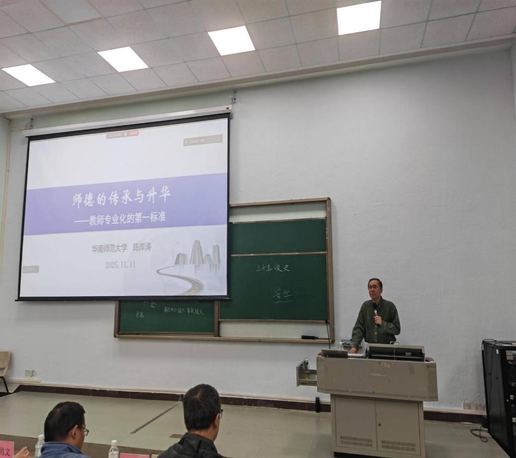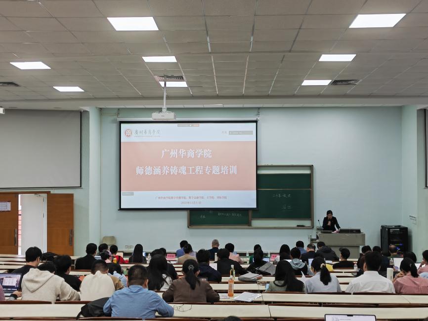 为深入贯彻新时代高校教师职业行为准则,筑牢教师队伍师德根基,2025年11月11日,广州华商学院数字金融学院联合数字传媒学院、文学院、国际学院共同举办“师德涵养铸魂工程”专题培训活动,共同探寻师德建设的时代内涵与实践路径。 培训伊始,教师发展中心主任杨俏文指出,学校持续推进的师德涵养铸魂工程,旨在引导广大教师坚定理想信念、涵养高尚师德,切实担当起立德树人的时代重任。 通过专题讲座、案例研讨、实践交流等多元形式,推动师德教育入脑入心,助力教师将师德规范内化于心、外化于行,真正成长为学生为学、为事、为人的示范。 华南师范大学陈岸涛教授以《师德的传承与升华——教师专业化的第一标准》为主题进行培训。立足国家教育战略,结合时代背景剖析高等教育机遇与挑战,强调“师德是教师评价首要标准”,需贯穿职业发展全程。他通过教育界先进事迹解读“四有”好老师内涵,鼓励教师以学促思、提升素养,强调传承师德并非简单复刻传统,而是要汲取中华优秀传统文化中的教育智慧,将“立德树人”的根本任务融入教育教学全过程,让师德的精神内核代代相传。 培训尾声,党委教师工作部部长庞革英作出总结,要求教师提高政治站位,以党的创新理论指导实践,并围绕“政治站位、核心要求、常态长效、主体责任”四方面对师德建设提出要求,号召大家将学习成果转化为育人实效。 学院将以此次培训为契机,持续深化师德师风建设长效机制,推动教师把所学所悟转化为教书育人的实际行动,不断提升立德树人实效,用心打造一支师德高尚、业务精湛、充满活力的教师队伍。