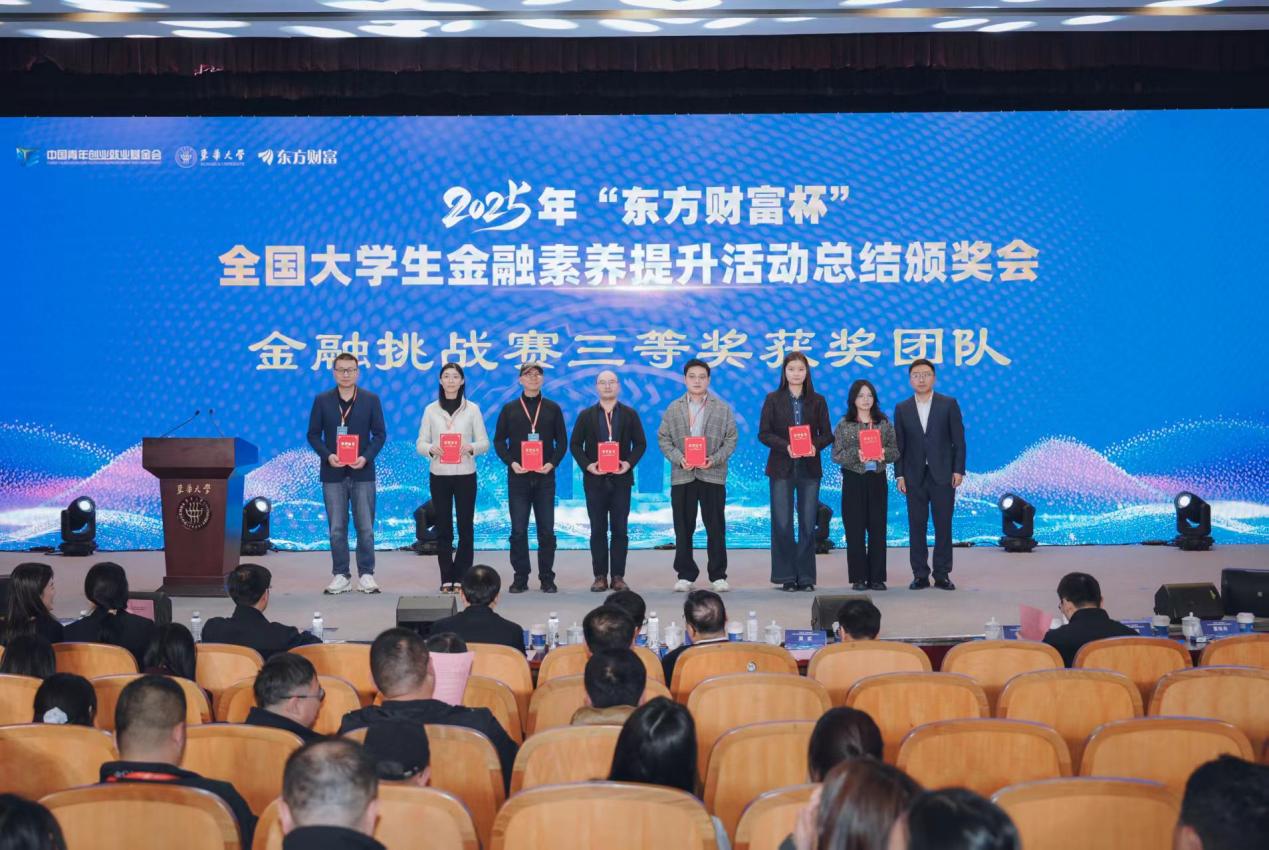 3月27日,2025年“东方财富杯”全国大学生金融素养提升活动总结会在东华大学延安路校区圆满举办。广州华商学院数字金融学院副院长钟坚毅、院长助理荣佳应邀代表学院赴上海出席了本次活动,与来自全国各地的专家学者、高校代表及获奖师生齐聚一堂,共同探讨大学生金融素养教育的新路径。 本次活动由中国青年创业就业基金会、东方财富信息股份有限公司、东华大学联合主办,北京科技大学学校共青团研究中心、东华大学团委共同承办。中国青年创业就业基金会党委副书记、副理事长兼秘书长熊剑,共青团上海市委副书记唐志宇,东方财富信息股份有限公司董事长其实,东方财富信息股份有限公司党委书记陈凯等领导出席了会议。会上,主办方回顾了2025年“东方财富杯”活动的丰硕成果。据悉,本届活动焕新升级,整合了金融挑战赛、金融知识进校园、金融安全知识网络比拼活动、金融技能提升四大板块,吸引了全国超3000所高校、近百万名学子参与,成功构建起全链条、常态化的大学生课外金融实践育人体系。 活动现场举行了隆重的颁奖典礼,表彰了在金融安全知识网络比拼及第十一届金融挑战赛中表现优异的团队与个人。数字金融学院副院长钟坚毅副教授代表我院参赛师生上台接受了三等奖获奖院校荣誉证书。广东海洋大学、中南林业科技大学、合肥工业大学、东华大学等高校代表分别从学生实践、教学指导、组织经验等维度进行了精彩的分享交流,为我院未来开展金融素养教育工作提供了宝贵的借鉴经验。 会议期间,钟坚毅副院长和荣佳院长助理和来自全国其他院校的教师进行了经验分享与交流,2025年广州华商学院数字金融学院与东方财富共同组建课程实践实训工作坊,不仅为数字金融学院师生搭建起金融理论与产业实践的贯通桥梁,更标志着校企协同育人进入"双向赋能"阶段。在2025年的金融挑战赛、金融知识进校园、金融安全知识网络比拼活动中,我院组织1200多名师生人次参与了各项比赛,取得了优异的成绩。 会议最后,与会领导与师生代表共同启动了2026年全国大学生金融素养提升活动暨第十二届“东方财富杯”全国大学生金融挑战赛。 2026年是“十五五”规划开局、加快建设金融强国的关键时期,广州华商学院数字金融学院将以此次活动为契机,进一步深化产教融合,积极组织和引导学生参与类似高水平金融实践赛事,不断提升学生的金融素养与实践能力,为培养适应新时代发展需求的数字金融人才贡献力量。