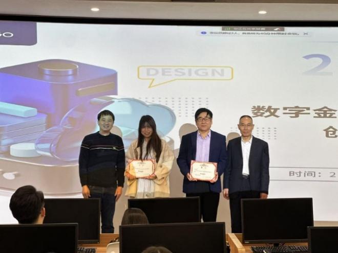 为鼓励数字金融学院的师生积极参与创新创业教育活动,学院于每年举办创新创业表彰盛典。盛典旨在通过设立“创新育才奖”、“实践先锋奖”及“育创卓越奖”等荣誉,对在创新创业领域做出突出贡献的师生予以表彰,营造崇尚创新、勇于实践的良好氛围。 张纯威院长和邱会锋副院长给获得“创新育才奖”的同学们颁奖 张纯威院长和邱会锋副院长给获得“实践先锋奖”的同学们颁奖 张纯威院长和邱会锋副院长给获得“育创卓越奖”的老师们颁奖
