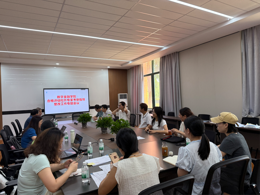 2025年6月24日上午,数字金融学院张纯威院长于创新楼208主持召开2024-2025学年第二学期合格评估校外专家考察指导整改工作专题会议。数字金融学院领导班子成员、各教学系主任(副主任)、及各教秘参会。 会议伊始,张纯威院长传达了《关于开展2024-2025学年第二学期合格评估校外专家考察指导整改工作的通知》精神,强调要充分认识专家意见的重要性,以整改为契机提升学院办学质量。 针对6月20日校外专家考察反馈,院长助理荣佳系统梳理了专家关注的核心问题: 1.专业建设层面:专家指出4个专业的开设需强化社会需求分析,尤其要突出“服务大湾区金融产业”的定位,避免仅以“申报可行性”作为专业设置依据。 2.师资结构层面:专家对35岁以下青年教师占比、高级职称分项数据(教授/副教授具体比例)及银龄教师作用机制提出质疑,要求明确7名银龄教师在专业建设、教学督导中的具体分工。 3.人才培养层面:专家强调“新商科”人才需聚焦“跨学科、数字化、创新能力”三大特征,批评现有培养方案中AI课程设置缺乏体系化设计,且未清晰界定新商科与传统商科的差异。 4.特色凝练层面:专家指出“数字金融”特色需以数据支撑,如自编教材(11本)的行业影响力、学生数字金融证书考取率、产教融合项目实效等需进一步量化。 与会院领导、系主任及教学秘书围绕专家反馈展开深度研讨,通过全员谈体会、谈认识、谈感受,学院形成"从评估压力到内涵动力"的共识,各岗位均明确"我为评估做什么"的具体行动项,推动整改从思想认知转化为实操举措。 此次会议标志着数字金融学院评估整改工作进入实质性推进阶段。学院将以专家意见为指引,以整改落实为抓手,持续深化"数字金融"特色建设,为迎接本科教学合格评估奠定坚实基础。