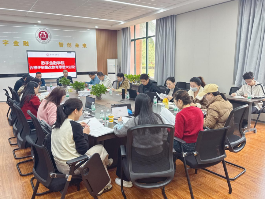为深入贯彻学校评估整改工作部署,全面梳理学院评估工作中的薄弱环节,凝聚整改共识、明确整改方向,推动学院办学质量与育人水平再提升,2025年12月23日,数字金融学院在创新楼218召开评估整改思想大讨论会议。评估办杨小元处长应邀到场指导,数字金融学院院长张纯威、学院党委书记李明杰、党委副书记兼副院长邱会锋、院长助理荣佳、院长助理钟坚毅等院领导班子及各系主任、骨干老师、辅导员、行政教辅参会,全体评估协同组老师签到入座,开展数字金融学院合格评估整改教育思想大讨论,为评估整改工作建言献策。 会上,评估办杨小元处长传达了学校关于评估整改工作的核心要求,肯定了数字金融学院在前期评估准备工作中的付出与成效,并结合评估指标体系,围绕本科教学工作合格评估整改教育思想大讨论学习资料汇编发表学习感悟和心得体会,并对评估整改工作的严肃性、紧迫性和系统性提出指导意见。杨处长强调,评估整改是提升办学内涵的关键契机,要坚持问题导向,精准梳理短板弱项;要强化责任落实,明确整改时限与主体;要注重长效机制建设,将整改成效转化为常态化工作成果,推动学院各项工作规范提质。 随后,参会的各位领导、各系主任及老师结合自身分管工作与系部实际,围绕评估整改重点议题展开热烈讨论。大家聚焦人才培养方案优化、教学质量提升、学生管理服务改进、师资队伍建设等关键领域,坦诚交流存在的问题,积极分享整改思路与实践举措,在思想碰撞中凝聚了“以评促建、以评促改、以评促管、以评促强”的共识。 最后,数字金融学院院长张纯威作总结发言。他对杨小元处长的悉心指导表示感谢,对本次会议的成效给予充分肯定,并就学院后续评估整改工作作出部署。张院长强调,全体教职工要提高政治站位,深刻认识评估整改的重要意义;要细化整改措施,建立问题清单、责任清单、时限清单,确保整改工作落地见效;要强化协同联动,各部门、各系部密切配合,形成整改工作合力;要以评估整改为契机,补齐发展短板,健全长效机制,全面提升学院办学治院能力,为培养高素质应用型数字金融人才、推动学院高质量发展奠定坚实基础。